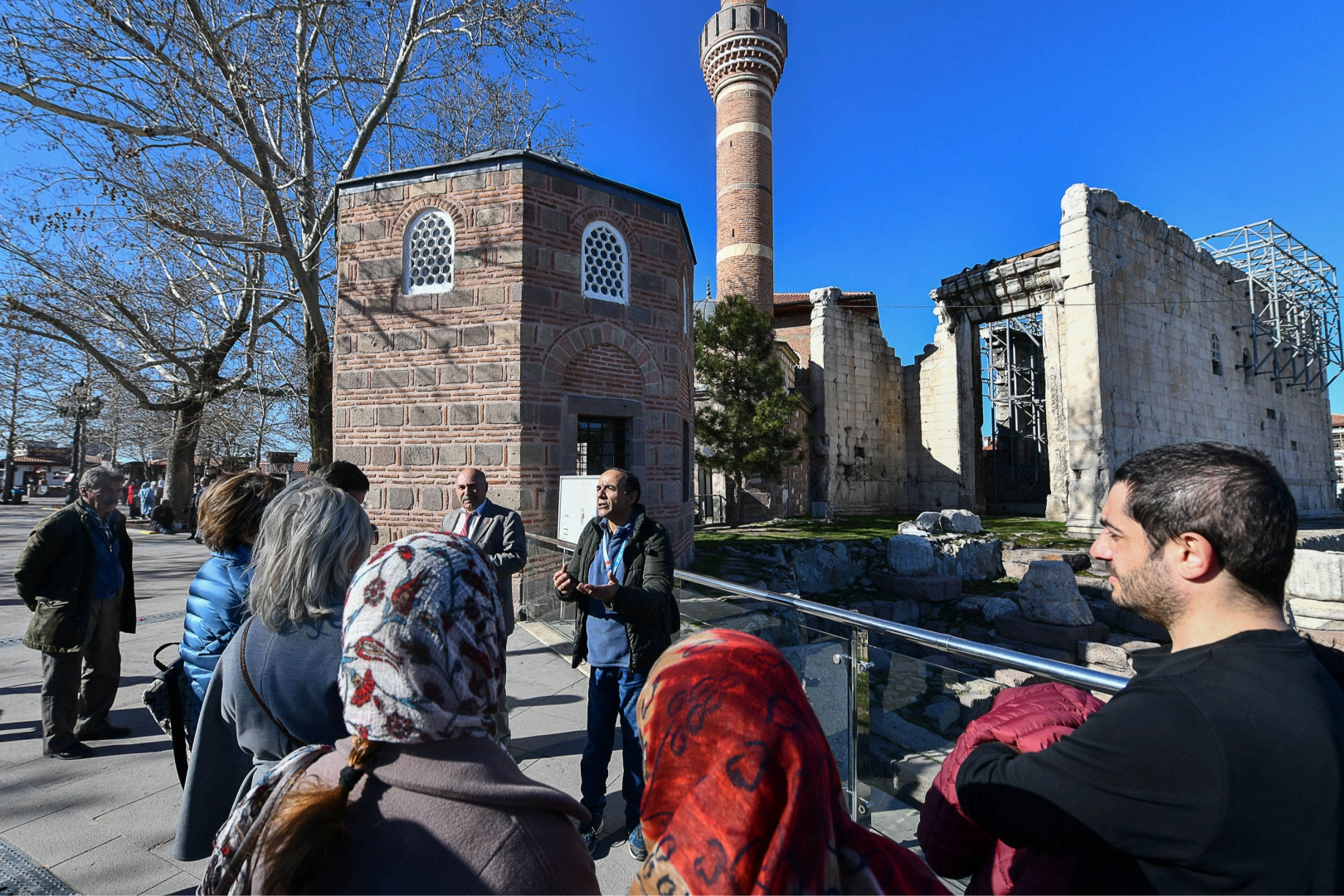 Ankara Büyükşehir Belediyesinin Ramazan’a özel hayata geçirdiği Ankara İnanç Miras Rotası ile tarihe yolculuk başladı. İlk turda 25 kişilik bir grup, Ulus’taki tarihi cami ve türbeleri ziyaret etti. Mimar Sinan’ın Ankara’daki tek eseri Cenab-ı Ahmet Paşa Camii’nden başlayan tur, Hacı Bayram-ı Veli Camii’nde son buldu. Rehber eşliğinde ziyaret edilen mekânlar hakkında detaylı bilgi alma fırsatı bulan katılımcılar, Arslanhane Camii önünde de Şehir Tiyatroları oyuncuları tarafından sergilenen “Ahilik Kültürü” konulu mini tiyatro gösterisi ile buluştu.