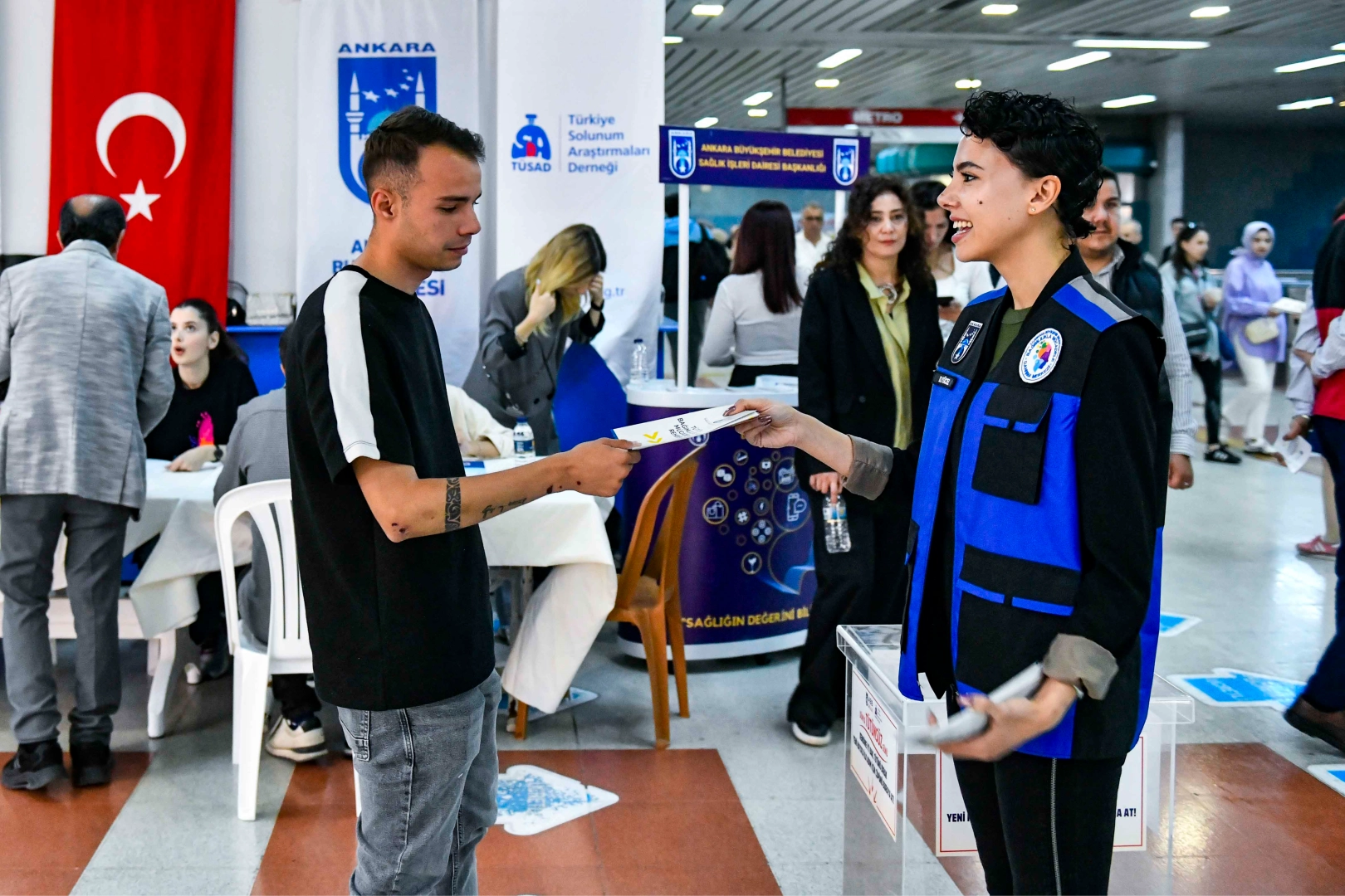 Kızılay Metro İstasyonu’nda gerçekleştirilen etkinlikte, tütün kullanımının sağlığa olan olumsuz etkilerini vurgulamak amacıyla vatandaşlara bilgilendirici broşürler dağıtılırken nikotin bağımlılığı düzeyini belirlemek için solunum fonksiyon testi de yapıldı.