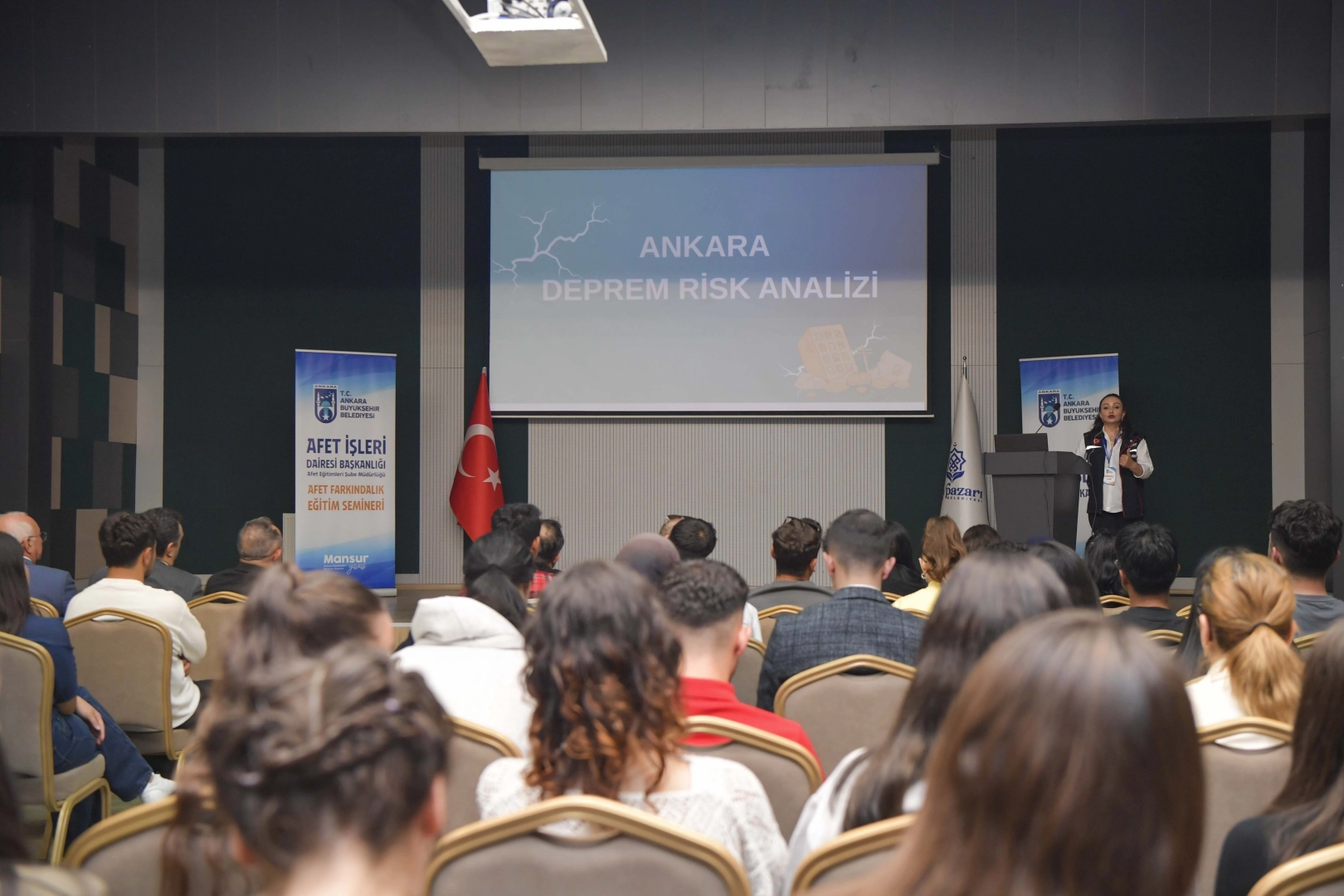Ankara Büyükşehir Belediyesi (ABB), afetlere karşı bilinçli ve hazırlıklı bir toplum oluşturmak amacıyla sürdürdüğü “Afet Farkındalık Eğitimleri”ne kentin dört bir yanında devam ediyor. Bu kapsamda son durak Beypazarı oldu. Beypazarı Konferans Salonu’nda düzenlenen Afet Farkındalık Eğitim Semineri’ne ilçe belediye personelleri, mahalle muhtarları ve Ankara Üniversitesi Beypazarı Meslek Yüksekokulu öğrencilerinden oluşan 110 kişi katıldı.