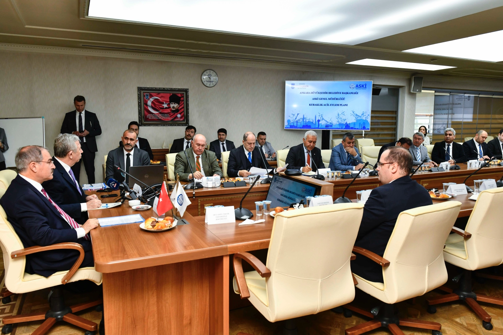 Ankara Büyükşehir Belediye Başkanı Mansur Yavaş, ASKİ Genel Müdürlüğü'nde düzenlenen Kuraklık Acil Eylem Planı toplantısına katıldı.