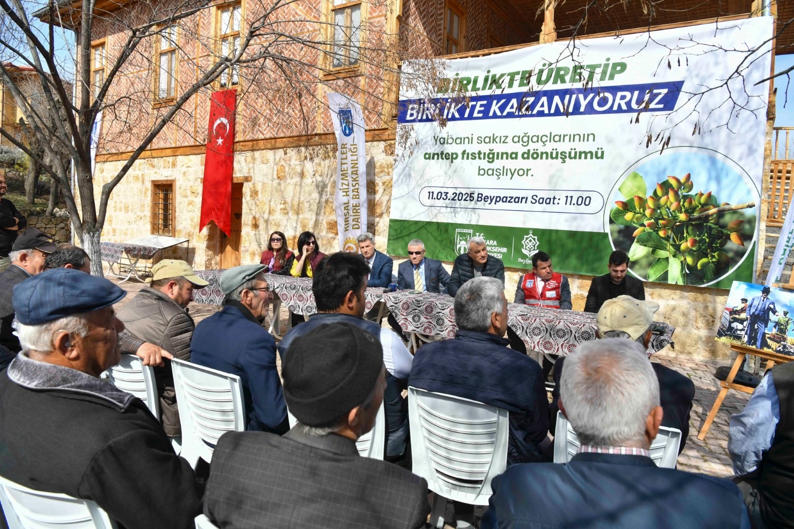 Kırsal Hizmetler Daire Başkanlığı; doğal sakız ağaçlarının antep fıstığına dönüştürülmesi amacıyla yeni bir proje başlatıldı. Ankaralı üreticiye yeni bir kazanç kapısı proje kapsamında olacak; Beypazarı ve Güdül ilçelerindeki çiftçilere yönelik ön toplantı toplantıları ve ağaçların nasıl budanıp aşılanacağına süt uygulamalı eğitimler verildi.