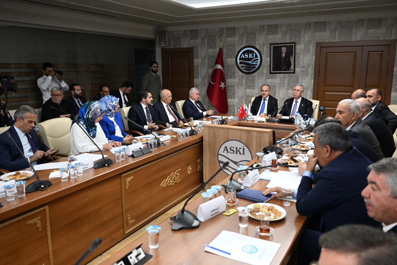 Toplantıda ASKİ tarafından yapılan sunumda, kuraklığa karşı su tasarrufu, kaçakların azaltılması ve alternatif su kaynaklarının kullanımı üzerine yeni projelerin geliştirildiği aktarıldı.