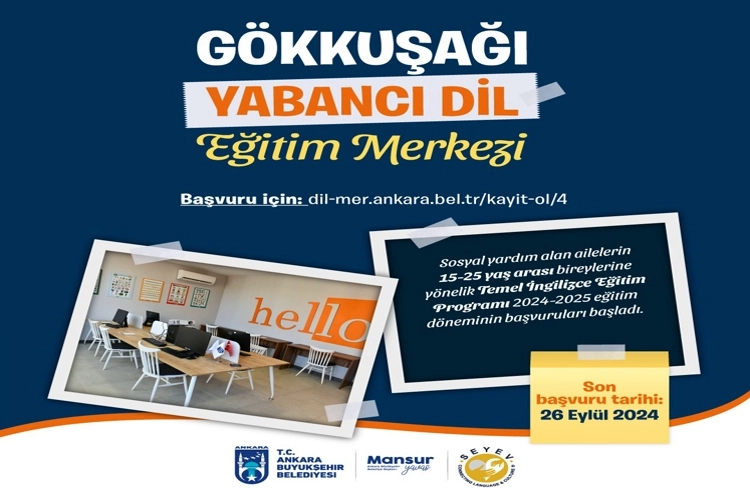 Ankara Büyükşehir Belediyesi ve Seda Yekeler Eğitim Vakfı (SEYEV) iş birliğiyle bu yıl da sosyal yardım alan ailelerinin 15-25 yaş arası çocuklarına ücretsiz Temel İngilizce Eğitim Programı düzenlenecek. Eğitim programından yararlanmak isteyenler dil-mer.ankara.bel.tr/kayit-ol/4 adresi üzerinden başvuru yapabilecek.
