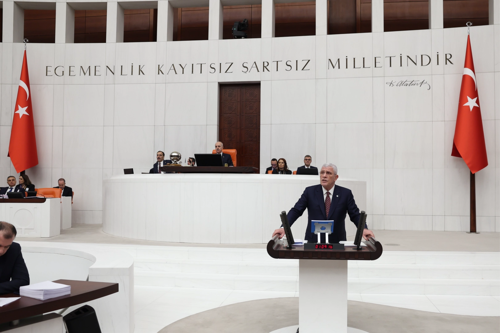 "Türkiye ekonomisi, ekonomist olduğunu iddia eden bir zatın önderliğinde felakete sürüklenmiştir" diyen Dervişoğlu, hükümet sıralarına bakarak "Cumhuriyetin yüzüncü yılı için tam 12 yıl önce 37 hedef koymuştunuz. Ve tebrikler bunlardan 34’ünü tutturamadınız" ifadesini kullandı. Ay'a sert iniş vaadi üzerinden iktidara göndermede bulunan Dervişoğlu, "Evet, inişiniz oldukça serttir ama indiğiniz yer ay değildir. İktidardan düşüyorsunuz fakat farkında değilsiniz." diye ekledi. 'Dayatılmış bir muhasebe defterinden farksız' dediği 2025 bütçesine karşı olduklarını vurgulayan Dervişoğlu, "Çünkü bu bütçe, Türk milleti için bir zulüm bütçesidir." şeklinde konuştu. Dervişoğlu, "Bilinsin ki, bu bütçe inşallah sarayın son bütçesidir. Bir sonrakini Milli Meclisimiz kendisi yapacaktır" diye ekledi.