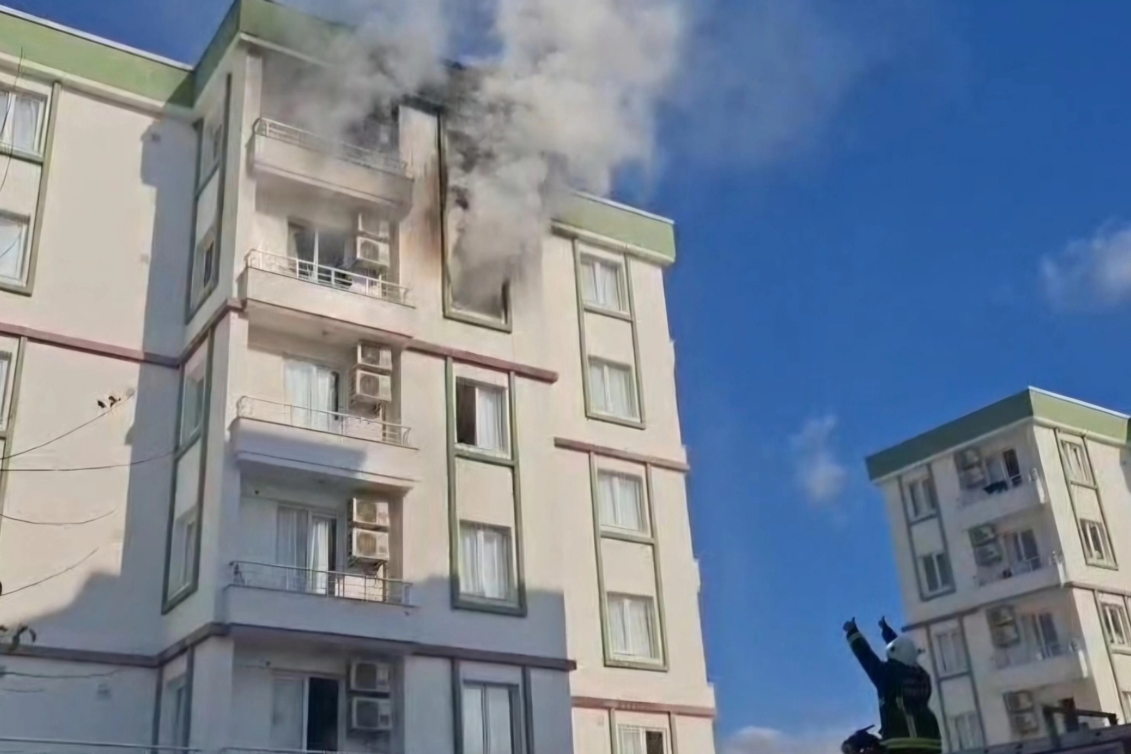 Mehmet ŞENTÜRK / ANTALYA (İGFA) - Antalya'nın Kumluca ilçesinde KYK yurdunun 4. katında meydana gelen ve klimadan çıktığı tahmin edilen yangın, öğrenciler tarafından fark edildi.
