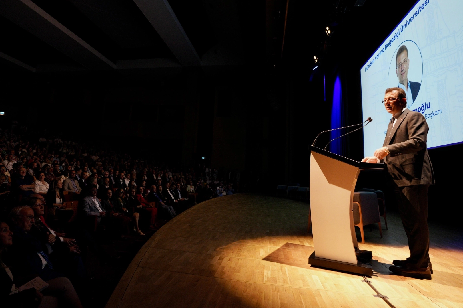 Boğaziçi Üniversitesi’nin, çok uzun yıllardan bu yana Türkiye’nin ve dünyanın en önemli ve başarılı eğitim kurumlarından biri olduğunun altını çizen İmamoğlu “Elbette Boğaziçi Üniversitesi’nin tarihini 53 yılla sınırlayamayız. Ta 1863’e kadar giden bir geçmişi var. YÖK'ün ‘araştırma üniversitesi’ olarak deklere ettiği ilk üniversitelerden birisi. Ülkemizin toplumsal ve ekonomik hayatına çok büyük katkılar sunmuş, akademik özgürlük, kurumsal özerklik ve katılımcı yönetim gibi değerleri inşa etmiş, gerçekten eğitim adına, yüksek öğrenim adına Türkiye'miz için önemli bir değerimiz. Böyle köklü ve gelenekli eğitim kurumlarına sahip olmak; kentlerin, toplumların geleceği açısından çok büyük bir önem taşıyor. Bu büyük değerlerimizi korumak ve geliştirmek, açıkçası hepimizin görevi” dedi.
