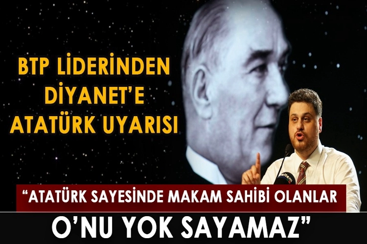 BTP liderinden Diyanet’e Atatürk uyarısı! “Atatürk sayesinde makam sahibi olanlar O’nu yok sayamaz” diyen Hüseyin Baş, “Ey Diyanet! Bu sefer de hutbede Atatürk’ü anmazsanız, bu bardağı taşıracak son damla olacak. Milletçe istifa etmeniz için ne gerekiyorsa yapacağız” paylaşımı yaptı.