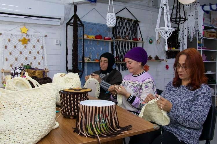 Çocukları diğer etkinliklerdeyken, kendilerinin makrome kursunda rahatladıklarını ve huzur bulduklarını söyleyen Nurdoğan Karaduman, “Büyükşehir Belediyemiz bu anlamda çok başarılı. Bize büyük destek veriyor. İlk önce duvar süslerinden başladık. Küçük küçük şeyler yaparak becerilerimizi artırdık. Şu anda çantaya geçtik. Makromeler, askılıklar, duvar süsleri, cüzdanlar… Hepsinde ayrı bir heyecan yaşadık. Haftanın 3 günü buradayız. Diğer günler de ders olunca gelip, derse katılıp gidiyoruz. Örneğin pilatese gidiyorum, kızım da o arada dramaya giriyor. Takı tasarımı var, bir de Nefes Terapisi. O kadar güzel dersler ki anlatamam. Yani oradan çıktığımızda hepimiz sanki bulutların üzerindeyiz, çok iyi geliyor bize” dedi.