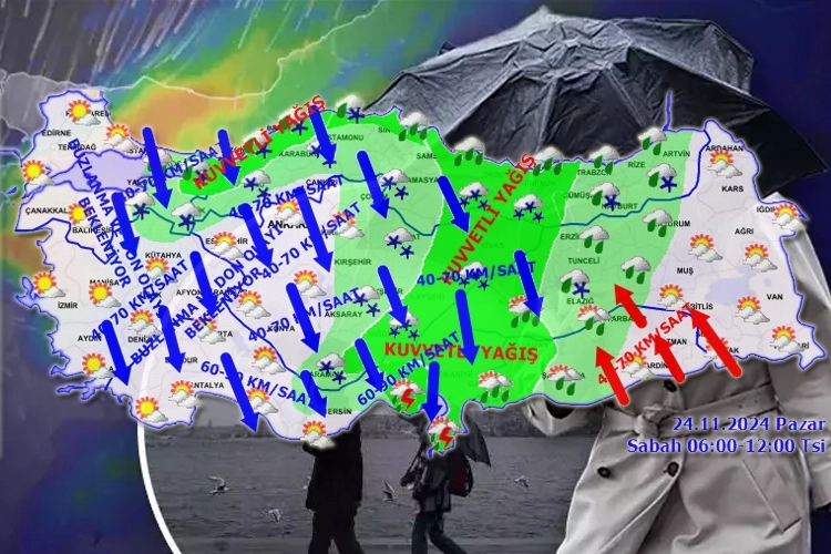 Genellikle karla karışık yağmur ve kar, Orta ve Doğu Karadeniz kıyıları, Güneydoğu Anadolu ile Yalova, Sinop, Iğdır ve Şırnak çevrelerinde yağmur ve sağanak, Doğu Akdeniz kıyıları ile Güneydoğu Anadolu'nun güneyinde yer yer gök gürültülü sağanak yağış şeklinde olması beklenen yağışların, Doğu Akdeniz'in doğusu, Karadeniz kıyıları, Doğu Anadolu'nun batısı ve Güneydoğu Anadolu ile Sakarya, Bolu, Niğde, Kayseri, Sivas, Karaman, Tokat, Gümüşhane, Bayburt, Erzurum, Muş, Bitlis ve Hakkari çevrelerinde yer yer kuvvetli olacağı tahmin ediliyor.