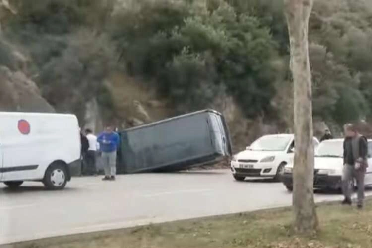 Kaza yerinden ilk görüntüler seyri halinde olan araç kamerasına yansıdı.
