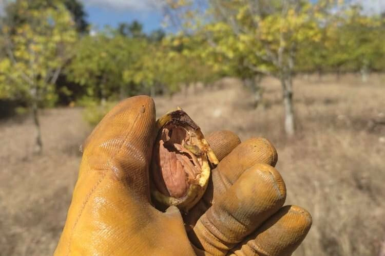 Ceviz üreticileri, ceviz bahçelerine domuzlardan korumaya çalışırken şimdi ise kargaların verdiği zarar dolayısıyla kendi yiyeceği kadar bile mahsul alamadığını belirttiler.