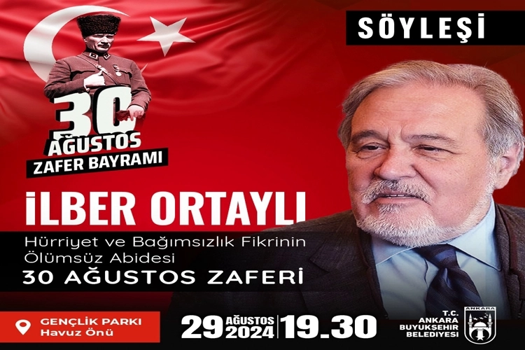 Ankara Büyükşehir Belediyesi tarafından gerçekleştirilecek etkinlikler kapsamında, 29 Ağustos’ta saat 19.30’da tarihçi, akademisyen ve yazar Prof. Dr. İlber Ortaylı, Gençlik Parkı’nda “Hürriyet ve Bağımsız Fikrinin Ölümsüz Abidesi 30 Ağustos” konulu programda Başkentlilerle buluşacak.