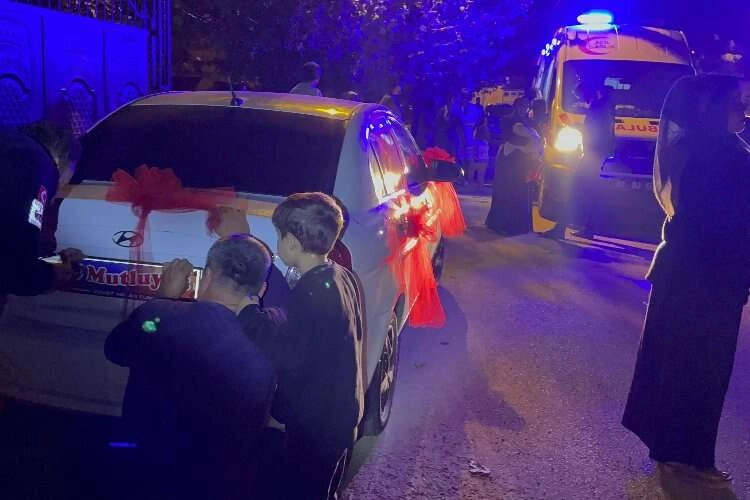 Mehmet TOPRAK / ADIYAMAN (İGFA) - Alınan bilgiye göre, Adıyaman merkezden Yunus Emre Mahallesi'ne seyir halinde olan düğün konvoyunun kavşağı döneceği sırada gelin aracı, sokaktan çıkan otomobille çarpıştı.