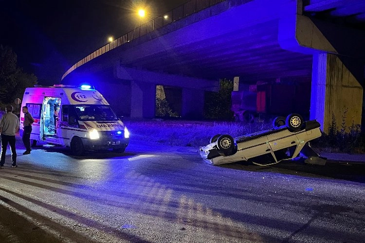 Sefer DEMİR / DÜZCE (İGFA) - Düzce'de meydana gelen kazada ters dönen otomobilden kendi imkanları ile çıkan sürücü yaralandı.