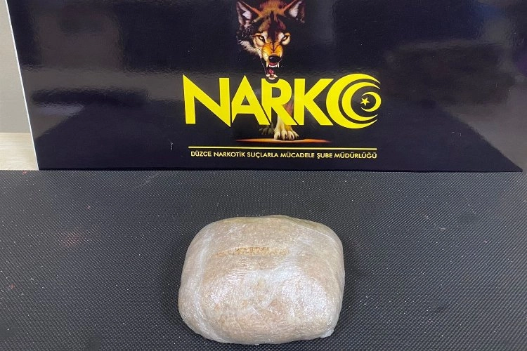 Sefer DEMİR / DÜZCE (İGFA) - Düzce'de narkotik ekiplerince yapılan çalışmalarda O.S. isimli şahsın aracında ve üzerinde yapılan aramada 1 parça halinde 410 gram A/M 2201 maddesi (41 kilogram Sentetik Kannabinoid üretilebilecek miktarda olan hammadde ele geçirildi.