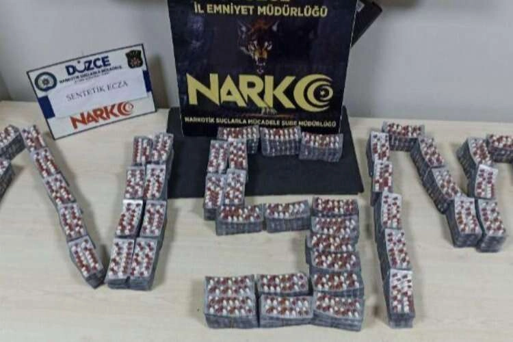Funda ŞAHİN / DÜZCE (İGFA) - Alınan bilgiye göre, teknik ve fiziki takip sonucu Darıcı Mahallesi'nde durumundan şüphelenilip durdurulan iki araçta yapılan aramada 6 bin 631 Sentetik uyuşturucu hap 19 bin 605 Lira, 1000 Dolar ve 100 Euro ele geçirildi.