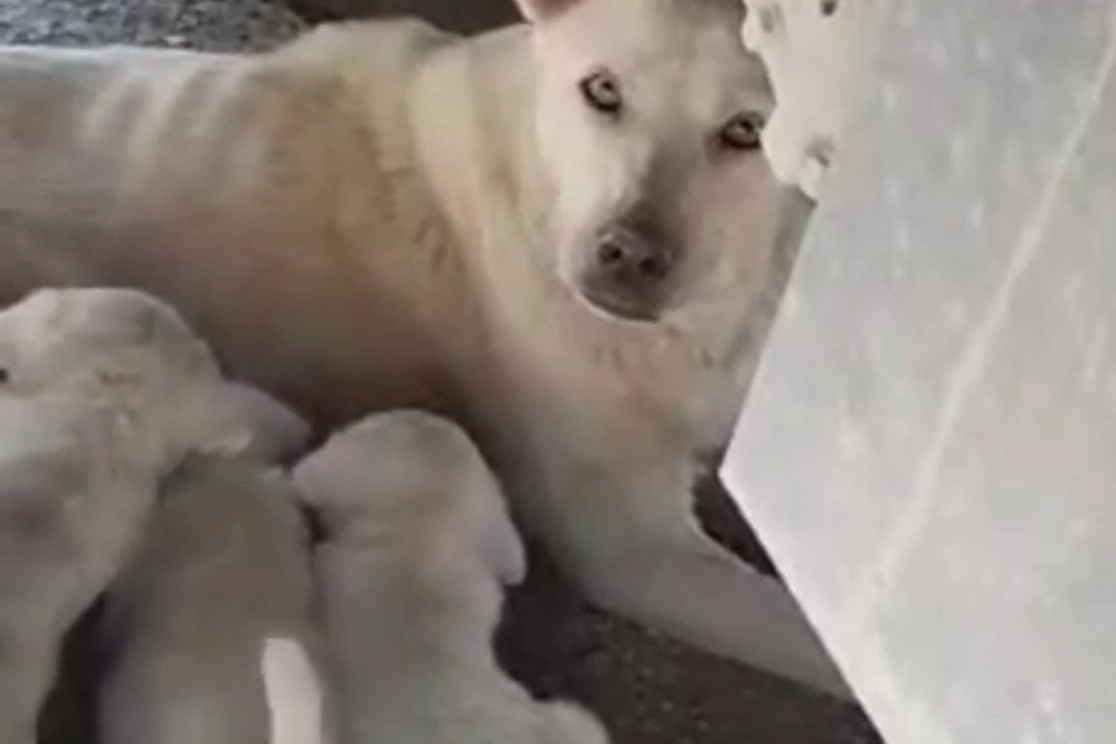Durmuş diğer kamyonların gitmesine rağmen köpeğin yavrularını emzirmesini bekledi.