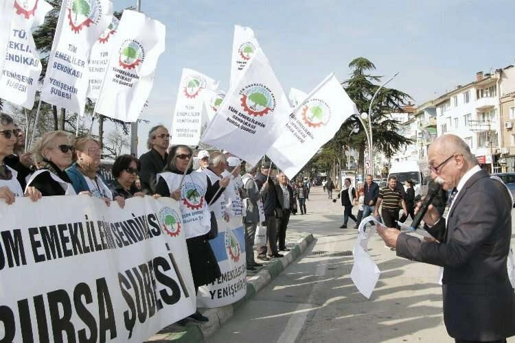 Atatürk Anıtı’nda basın açıklamasını Tüm Emeklilerin Sendikası Yenişehir Şube Başkanı Kamettin Baştürk okudu.