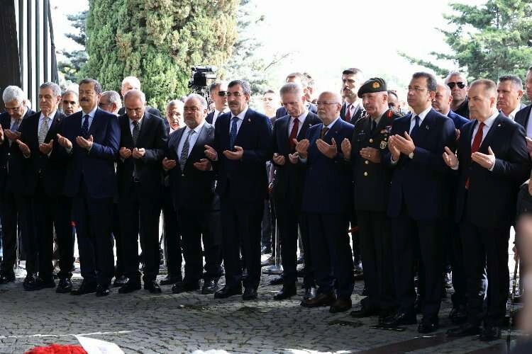 İSTANBUL (İGFA) - Türkiye Cumhuriyeti’nin 8’nci Cumhurbaşkanı Turgut Özal, vefatının 31. yılında Topkapı’daki Anıt Mezar’da düzenlenen törenle anıldı. Törene Cumhurbaşkanı Yardımcısı Cevdet Yılmaz, İstanbul Valisi Davut Gül, İstanbul Büyükşehir Belediye Başkanı (İBB) Ekrem İmamoğlu, 3. Kolordu Komutanı Korgeneral Sezai Öztürk ile Turgut Özal’ın ailesi ve vatandaşlar katıldı. Merhum Özal’ın öz geçmişinin okunması ve saygı duruşuyla başlayan tören okunan duayla sona erdi. İmamoğlu, anma töreni sonrası Özal ailesine taziyelerini sundu.