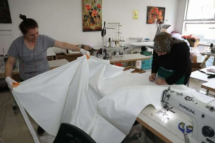 Kadınlar, ilimize gelen ve bölgedeki depremzedeler için geçtiğimiz günlerde kışlık pijama, atkı, şal ve battaniye örmeye başlamıştı. Üretici kadınlar bu kez de bölgedeki vatandaşların soğuk kış günlerinde en çok ihtiyaçları olan çadır için üretim çalışmalarına başladı. Kadınlar dikiş makinalarının başına geçerek depremzedeler için çadır dikiyor. Üretilen çadırlar, İzmit Belediyesinin yardım araçlarıyla kısa süre içerisinde afet bölgesine ulaştırılacak.