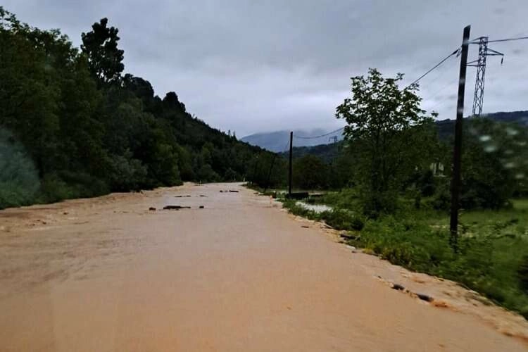Yoğun yağışlar dolayısıyla Sinop'un Ayancık ilçesi Ayancık yolu üzeri Yeniçam mevkiinde derede taşma meydana geldi.