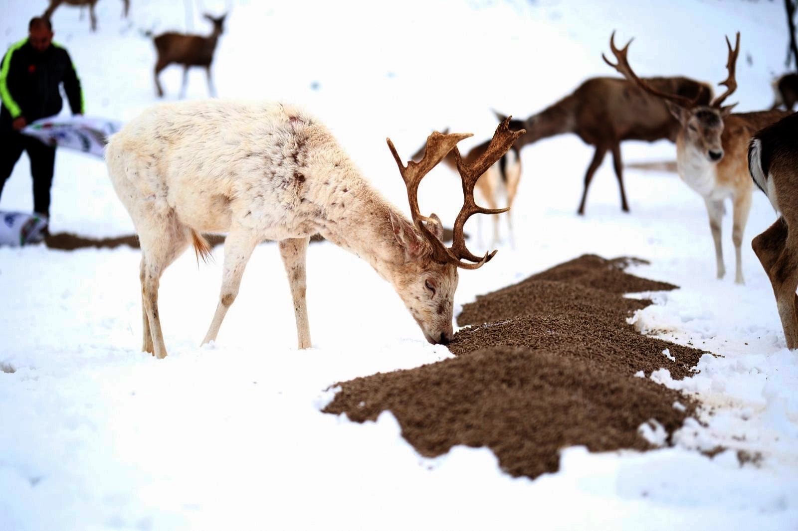 ÇORUM (İGFA) - Çorum Belediyesi, Sıklık Tabiat Parkı fauna tanıtım alanında bulunan yaban hayvanlarının ve kuşların olumsuz hava şartlarından etkilenmemesi için seferber oldu. Aniden bastıran kar yağışının ardından Çorum Belediyesi ekipleri Sıklık Tabiat Parkı’nda bulunan geyik, ceylan, karaca ve doğadaki kuşlar için harekete geçerek besleme yaptı.
