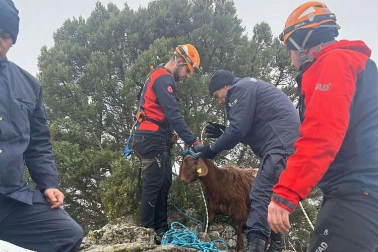 İhbar üzerine harekete geçen Jandarma ve AFAD ekipleri tarafından yapılan çalışma sonrası, herhangi bir kazaya sebebiyet vermeden mahsur kaldıkları kayalık bölgeden kurtarılarak sahibine teslim edildi.