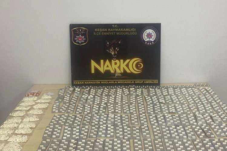 B.G ve A.A. adlı şüpheli iki kişi üzerinde ve sonrasında şahısların ikametlerinde yapılan aramalarda toplam 2 bin 385 adet 150 mg’lık pregabalin sentetik ecza hap ele geçirdi.