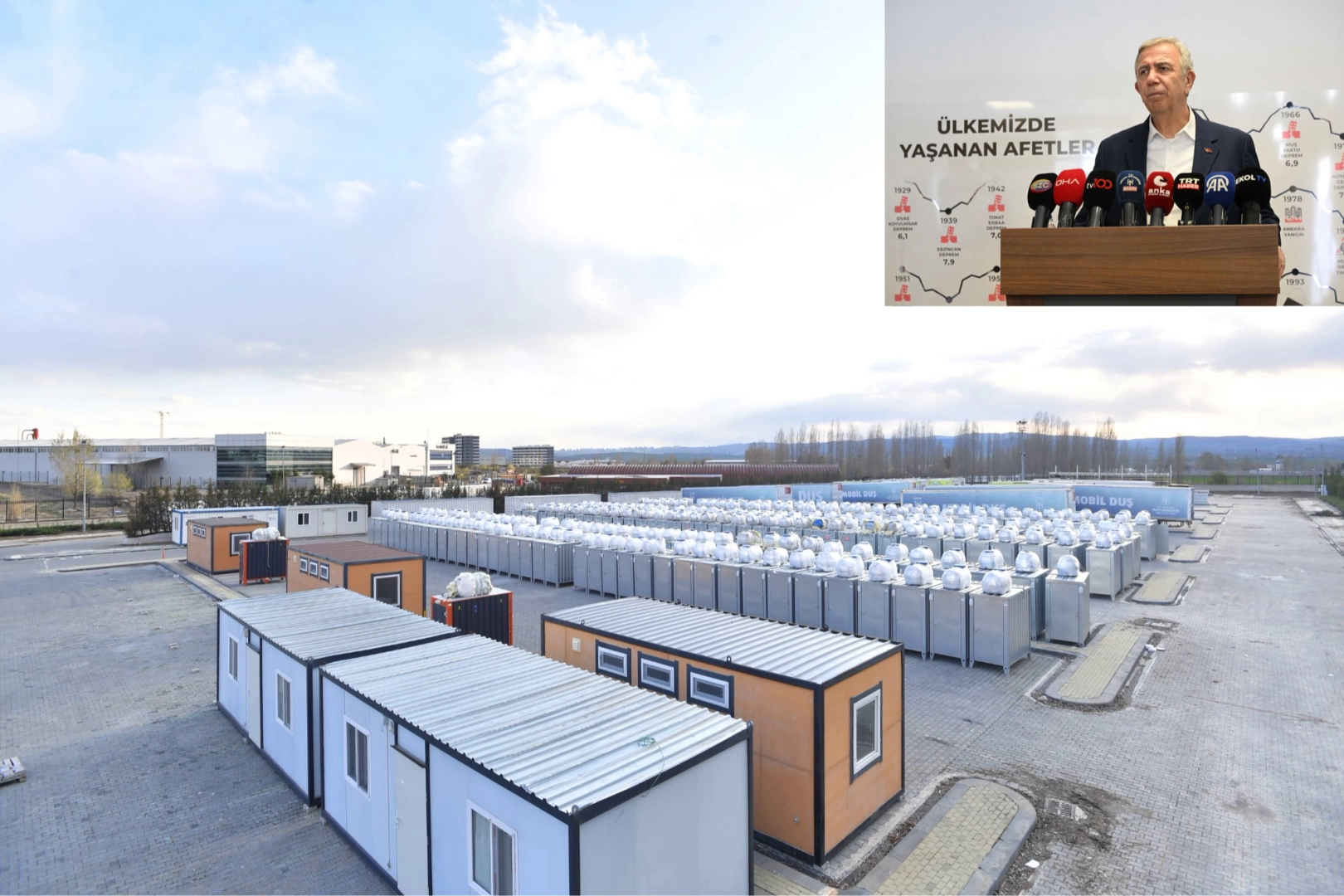 · Ankara Büyükşehir Belediye Başkanı Mansur Yavaş, afetlere hızlı ve etkin müdahalede bulunulması amacıyla Esenboğa Havalimanı yanındaki 7 bin metrekarelik alan üzerine kurulan Afet Eğitim ve Lojistik Merkezi’ni basın mensuplarıyla birlikte gezdi.