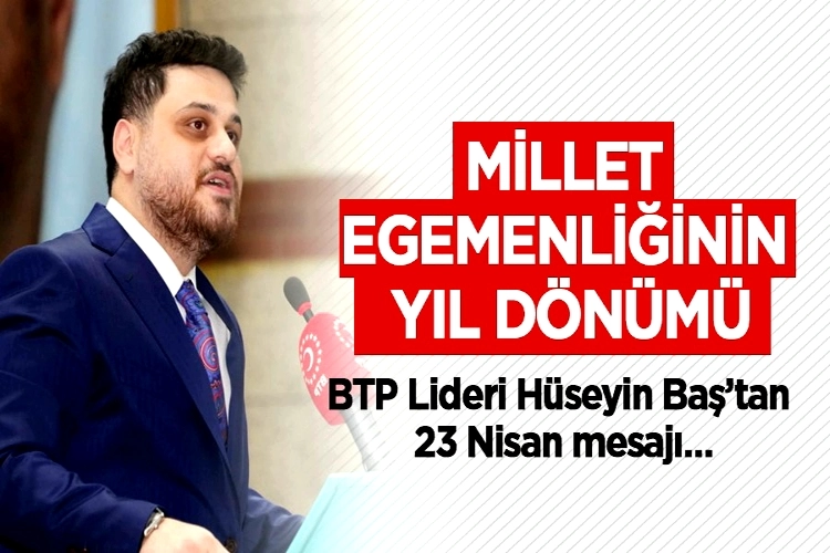 Millet egemenliğinin yıl dönümü 23 Nisan… 23 Nisan Ulusal Egemenlik ve Çocuk Bayramı dolayısıyla bir mesaj yayınlayan BTP Genel Başkanı Hüseyin Baş, ‘23 Nisan 1920'de, Gazi Mustafa Kemal önderliğinde hayata geçirilen ve millet egemenliğini esas alan bu siyaset, hepimiz için vazgeçilmezdir’ dedi.