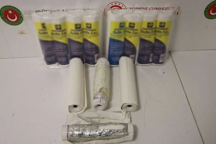 Yapılan incelemelerde ruloların arasına gizlenmiş halde X – ray tarama cihazında görünmesini engellemek amacıyla alüminyum ambalajlara sarılmış toz maddeler olduğu tespit edildi.
