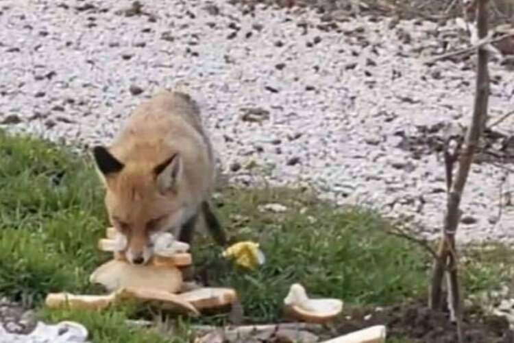 Duyarlı sürücünün fark ettiği aç olan tilki verilen ekmekleri ürkerek yerken, sürücü İbrahim Kahraman’ın tilkiye uyanık tilkim, kurnaz tilkim, babacığım, kızım diye seslenmesi gülümsetti.