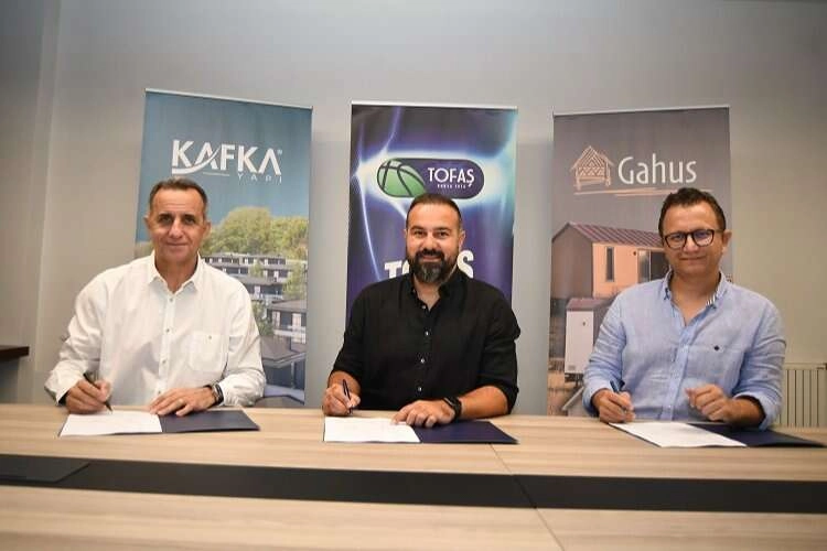 BURSA (İGFA) - Türkiye Sigorta Basketbol Süper Ligi ekiplerinden TOFAŞ, 2023-2024 sezonu öncesi kulüp sponsorları arasına bir yenisini ekledi. Mavi Yeşilli kulüp, Bursa’nın yapıdaki teknik gücü KAFKA YAPI ile sponsorluk anlaşması imzaladı. Mustafa V. Koç Spor Tesisleri’nde gerçekleşen imza töreninde TOFAŞ Spor Kulübü Genel Menajeri Tolga Öngören ile İnşaat Mühendisi & KAFKA YAPI Kurucu Ortağı Fırat Köksal ve İnşaat Mühendisi & KAFKA YAPI Kurucu Ortağı Kayhan Özyıldırım hazır bulunurken, yeni sponsorluk anlaşmasıyla ilgili imzalar atıldı.