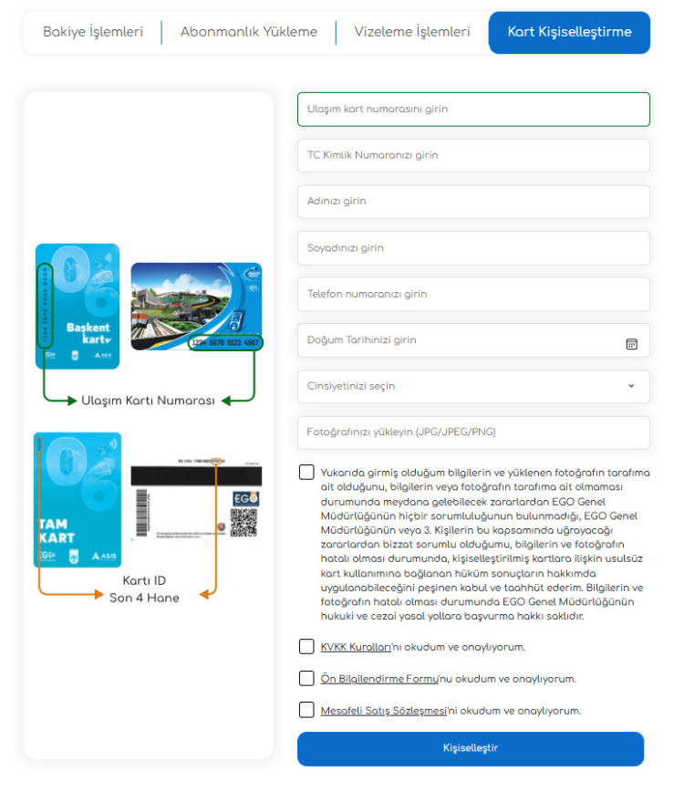 EGO Genel Müdürlüğü, anonim tam karta sahip vatandaşların Kart İşlem Merkezlerine gitmeden kartlarını kişiselleştirebilmelerine olanak tanıyan online uygulamayı hayata geçirdi.