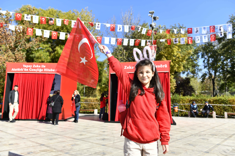 Ankara Büyükşehir Belediye Başkanı Mansur Yavaş, 29 Ekim Cumhuriyet Bayramı etkinlikleri kapsamında Ulus Gençlik Parkı'nda 101'inci yıla özel olarak tasarlanan yapay zeka destekli "T.C. Yaşasın Cumhuriyet Tüneli Dijital Deneyim Alanı"nın açılışını gerçekleştirdi.