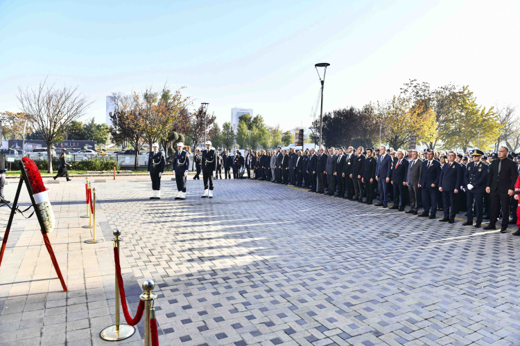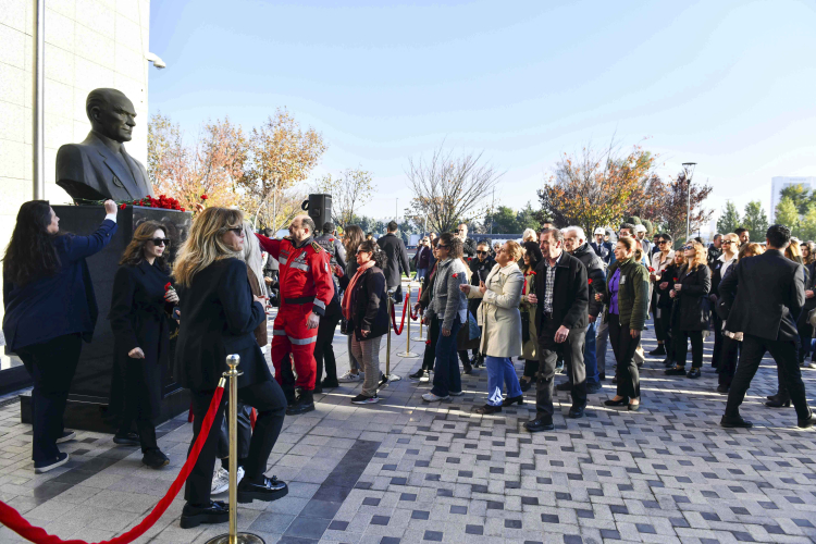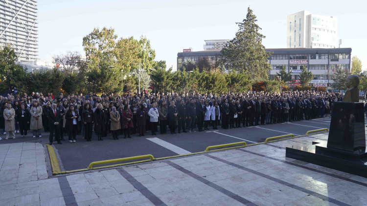 Büyükşehir Belediyesi önünde gerçekleştirilen törene, belediye bürokratları ve çok sayıda belediye personeli katıldı. Tören, ABB Genel Sekreter Yardımcısı Mustafa Kemal Çokakoğlu’nun Atatürk büstüne çelenk sunmasıyla başladı. Ardından saat 09.05’te sirene eşlik eden saygı duruşu ve İstiklal Marşı ile anma gerçekleştirildi. Bayrakların yarıya indirildiği törende, çalışanlar Atatürk büstüne kırmızı karanfiller bırakarak Ata’ya olan saygısını, minnetini ve özlemini bir kez daha ifade etti.