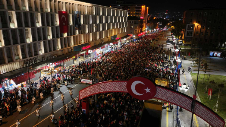 On binlerce Başkentlinin oluşturduğu Fener Alayı, yürüyüş güzergâhı olan Atatürk Bulvarı’na sığmadı.