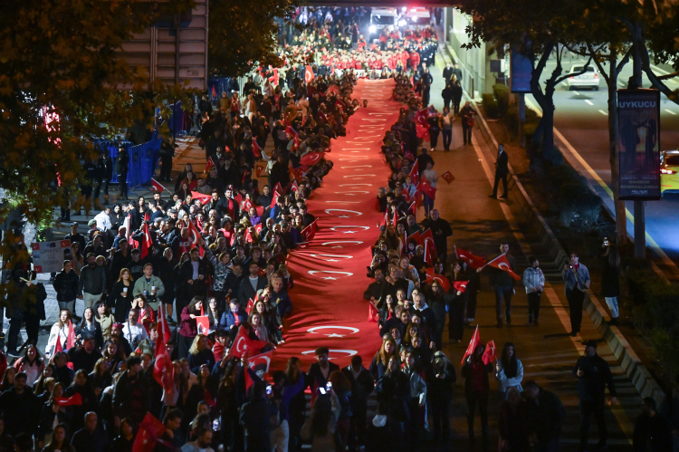 · Ardından on binlerce Ankaralı, Mareşal Atatürk Anıtı’ndan Birinci Meclis’e meşalelerle yürüdü.