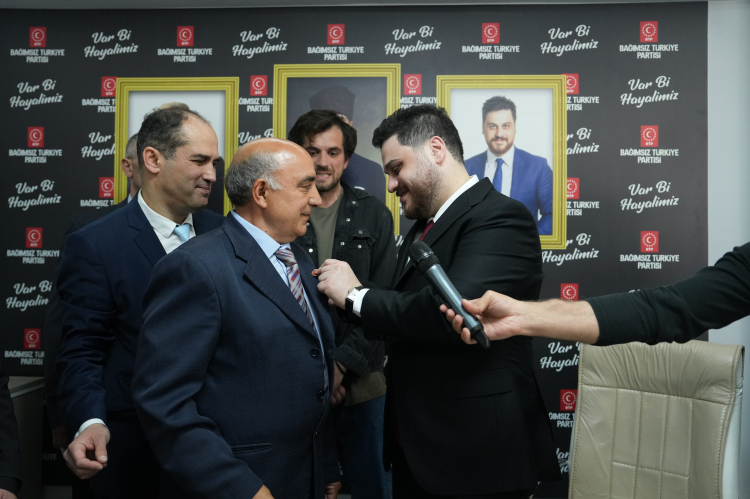 Bağımsız Türkiye Partisi Genel Başkanı Hüseyin Baş partiye yeni katılan isimlere rozetlerini taktı.