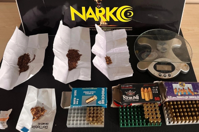 Aramalarda, 5 parça halinde toplam 15 gram sentetik kannabinoid (bonzai), 1 gram metamfetamin, 1 hassas terazi, uyuşturucu kullanımına yarayan 1 cam aparat, 61 adet 9x19 mm tabanca fişeği ve 28 adet kuru sıkı fişeği bulundu.