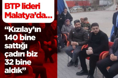 Malatya’da partisince kurulan çadırkent yaşam merkezini ziyaret eden BTP lideri burada depremzede vatandaşlarla sohbet etti, çocuklara oyuncak dağıttı.