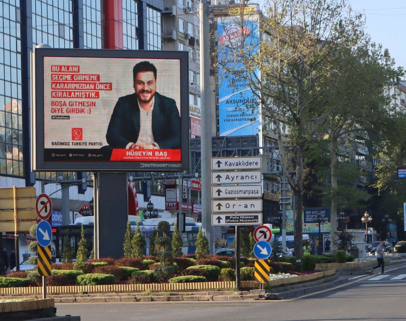 14 Mayıs seçimlerine girmeme kararı alan Bağımsız Türkiye Partisi, bu karardan önce kiraladığı başkent Ankara'daki billboardlara girdiği reklamla vatandaşları gülümsetti
